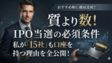 ホーム X Facebook はてブ LINE Pinterest コピー 2026.01.04 当サイトについて 当サイトでは、15社の証券会社を使い分け、相場を見ずに稼ぐ手法を公開しています。 こんな方に向いています。 日々の相場変動に振り回されるのが疲れた方 株価変動による資産変動のリスクを減らしたい方 深く考えずに稼ぎたい方 とは言いつつ、積立だけではつまらない方 おすすめ記事 【IPO特化】「質より数!私が15社も口座を持つ理由と当選戦略」※本記事はプロモーションが含まれていますIPOが当たらないのは運が悪いからではない「IPO、今年も全滅だった…」 「カスリもしない。やっぱり運が良くないと当たらないのか…」もしあなたがそう思っているなら、少し戦略を見直す必要があるかもしれま...